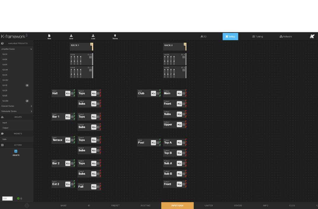 • Manage multiple K-array amps together seamlessly